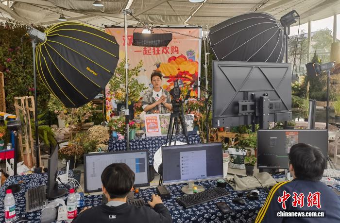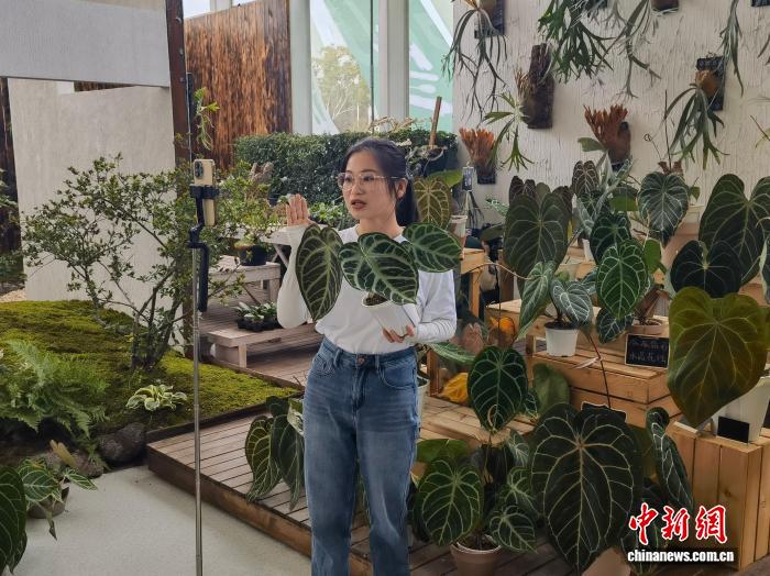 图为11月11日,正在浙江省桐城市崇祸镇的崇祸农创园,别名农创客经由过程脚机曲播卖售绿植。王劳飞 摄